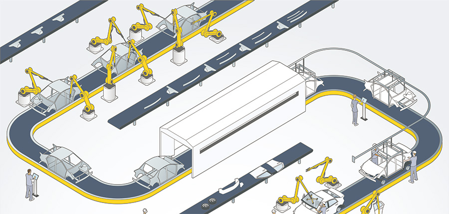 智昌集團通過自主研發的三元控制技術,面向機器人智能互聯、協同融合和群體智能控制,使得自動化裝配線配置產線控制系統LCS和智能化快速換模系統,可與MES/ERP系統有效集成,實現生產計劃生產指令直接下達到裝配線,裝配線自動調用不同產品的控制程序和對應的工裝,實現多種產品混線生產。采用3D視覺高精度定位算法、3D視覺高精度糾偏算法等技術,能夠對多品類、無序來料的汽車零部件精準識別抓取及高精度糾偏裝配。同時,裝配線通過LCS系統,可實時將生產進度及設備狀態信息上傳到MES系統,實現閉環管理。